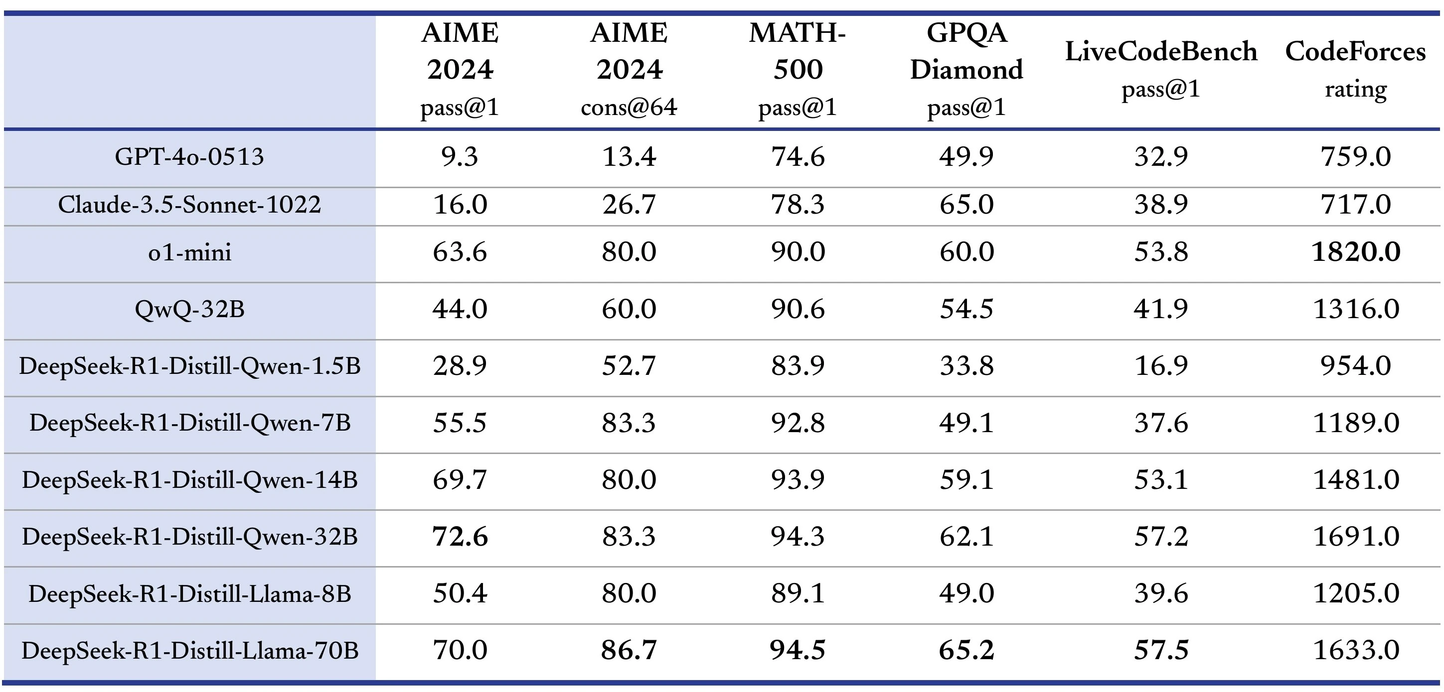 "Distilling" DeepSeek-R1 means: Taking smaller "dense models" like Llama3 and Qwen2.5, and fine-tuning them using artifacts generated by a larger model, with the intention to instill in them capabilities that resemble the larger model.