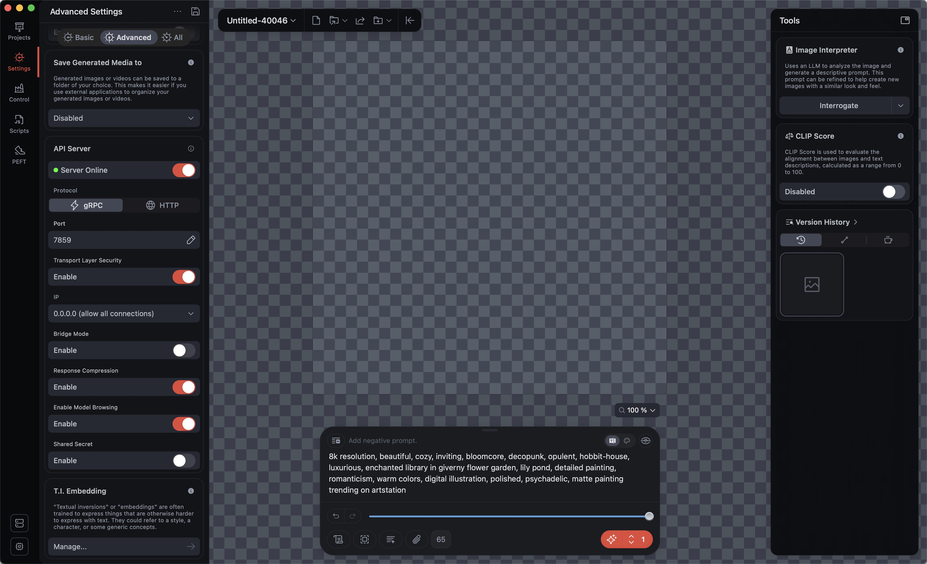 β‘οΈ If you want to use the Draw Things Backend permanently or outsource it to another machine, I recommend using the Stand-alone gRPC Server instead of the regular Draw Things Client.