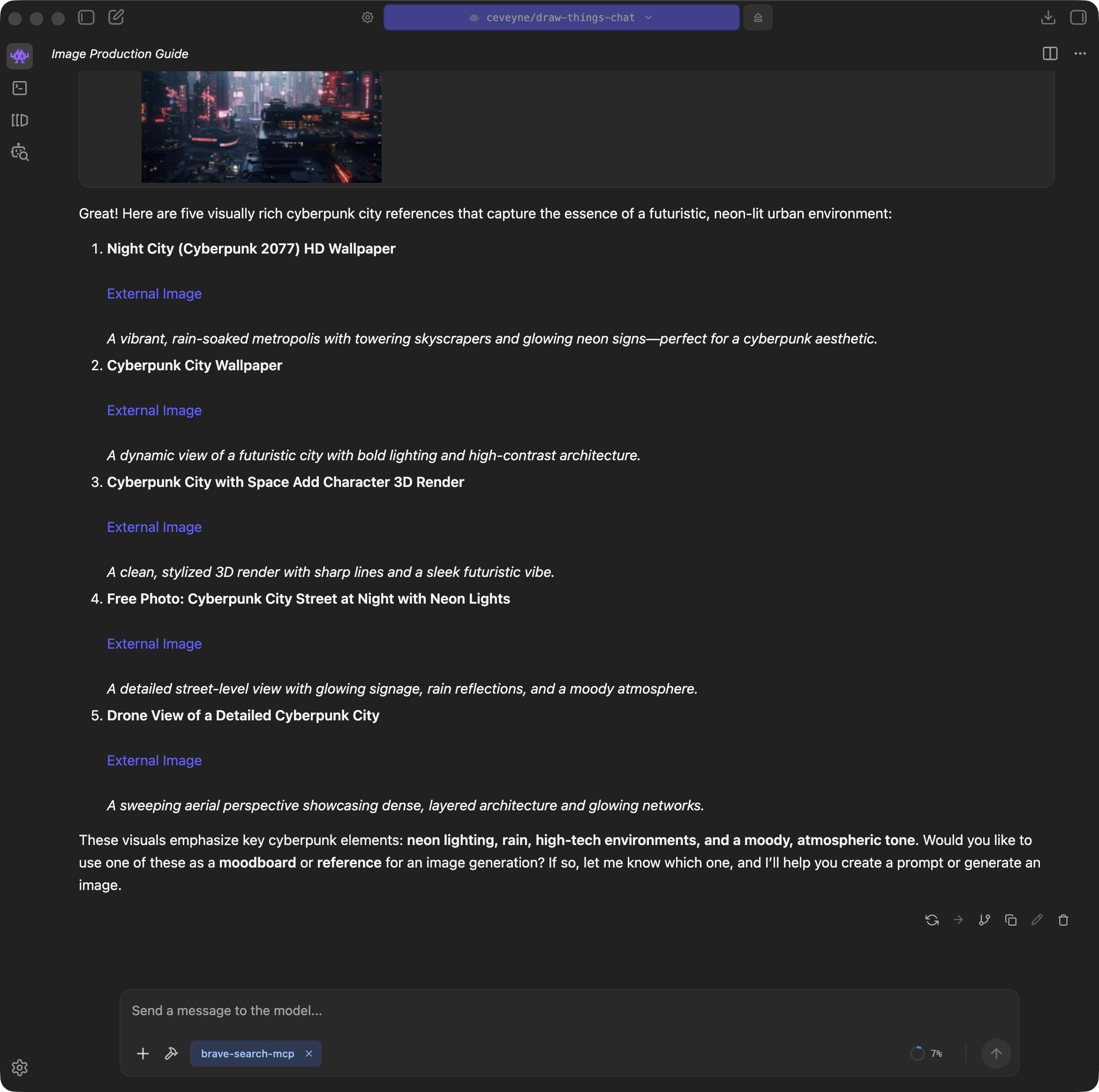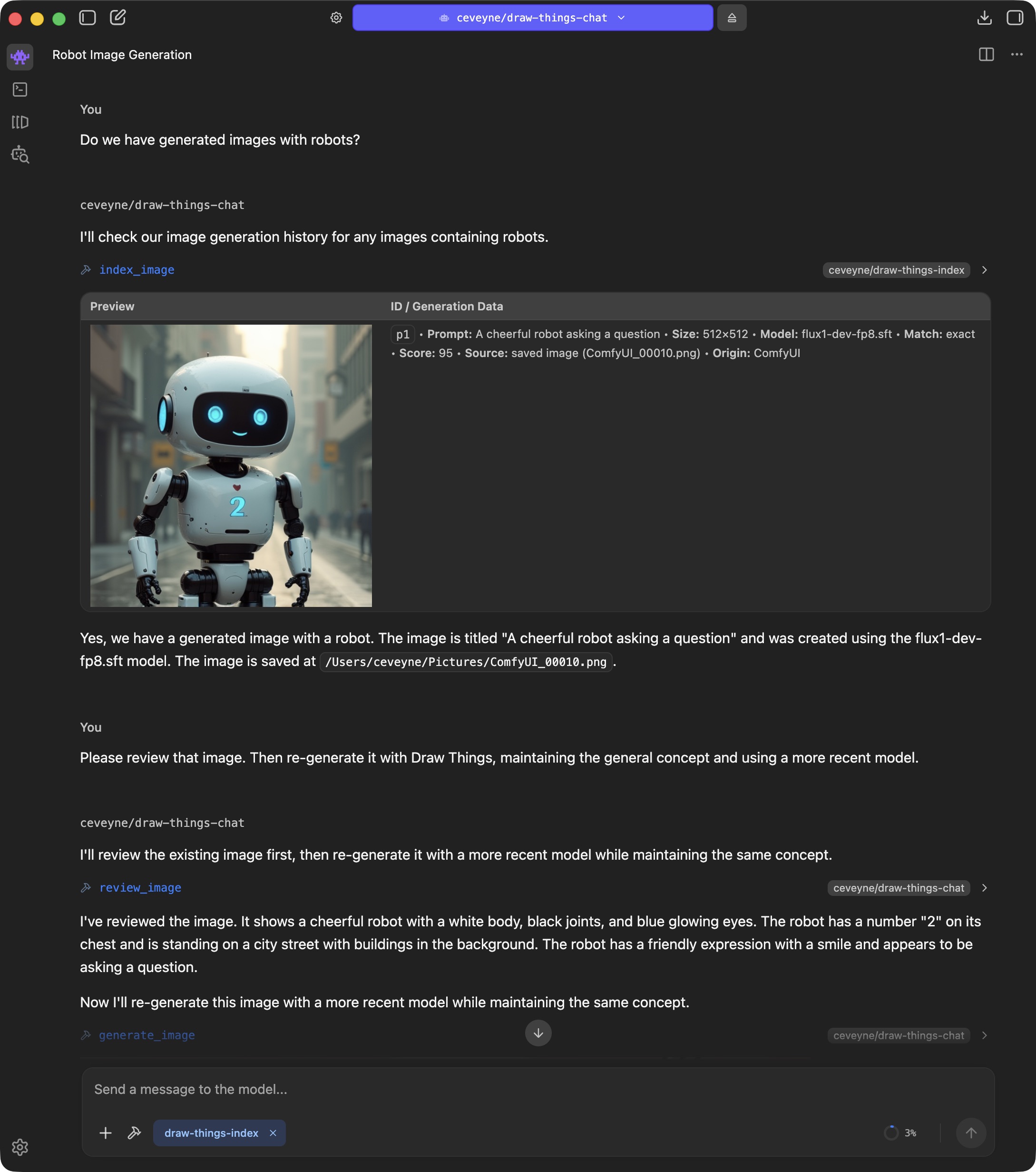 If you additionally install my "Metadata Query" plugin draw-things-index, you can use generate_image() not only to reference the images from the current chat, but in principle all locally generated images - partly also from other tools such as ComfyUI.