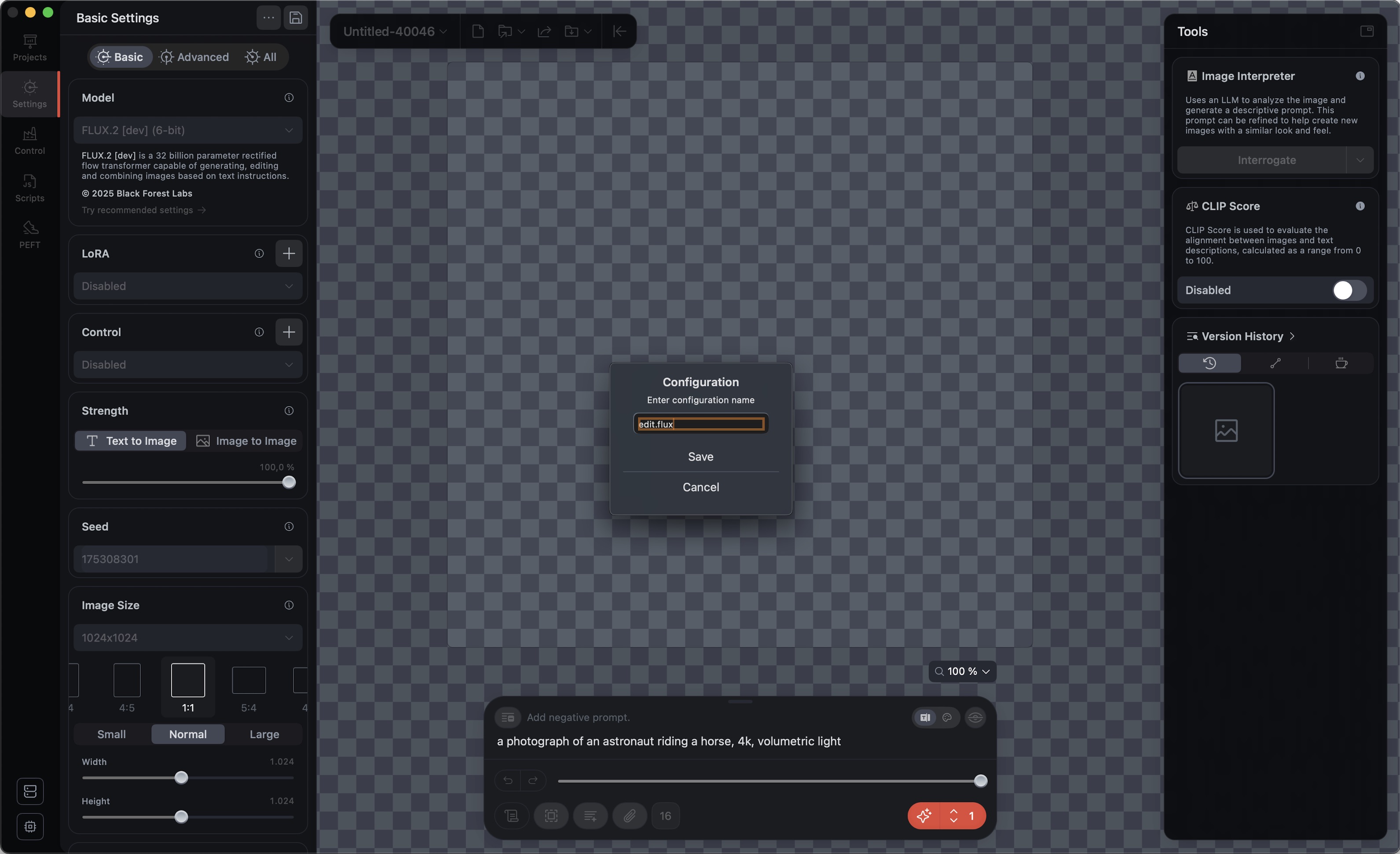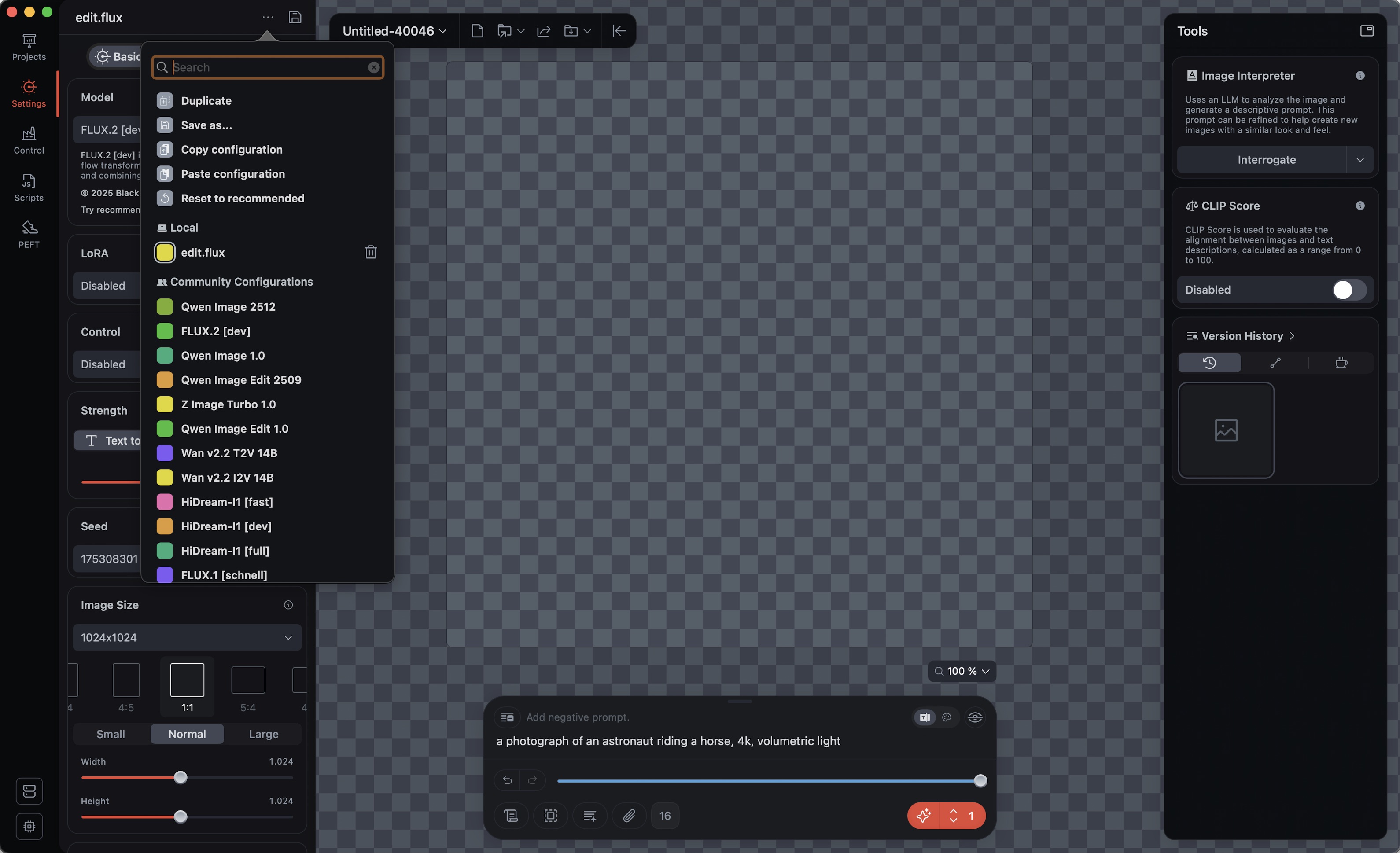 π» Currently, some standard Draw Things models are preset in the plugin. There are "Default" models (model: auto): mostly proven and fast. And beyond that, very new models. And don't worry: You can adjust and change all settings.