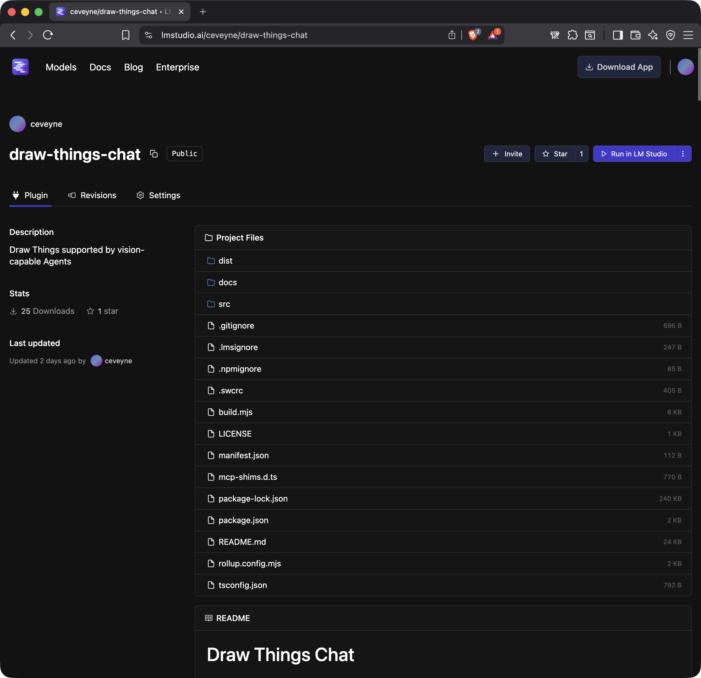 With just a few clicks, you download the LM Studio Plugin: ceveyne/draw-things-chat from the LM Studio Hub:
