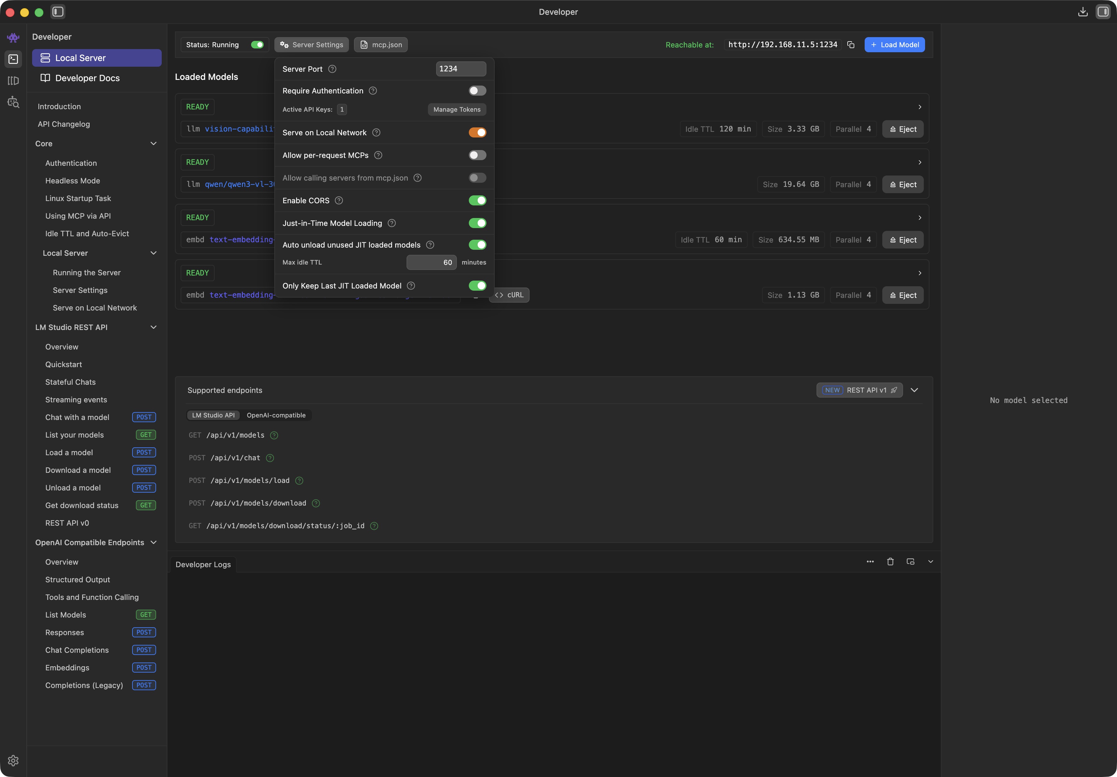 When all models are loaded and configured with a suitable Context Length, you only have to adjust the Server Settings: