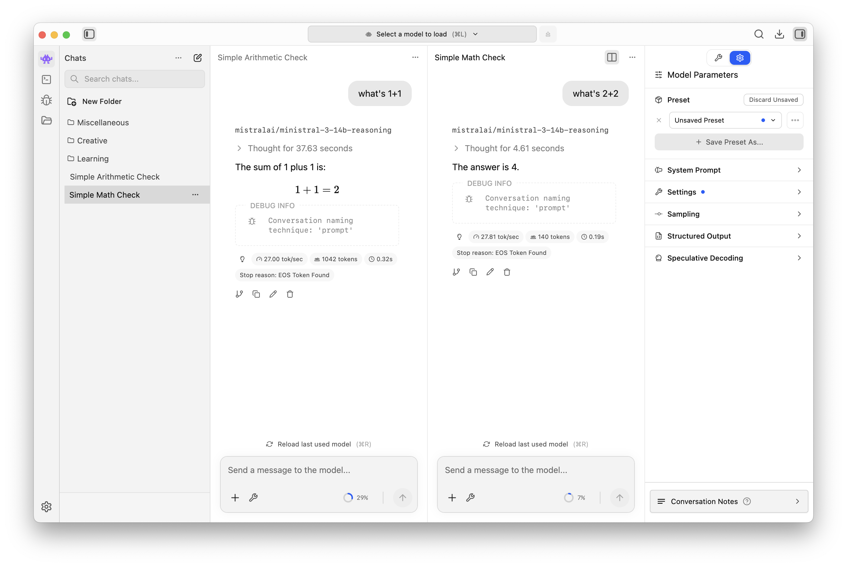 Use the split view in chat feature to send two requests simultaneously to two chats and view them side by side.