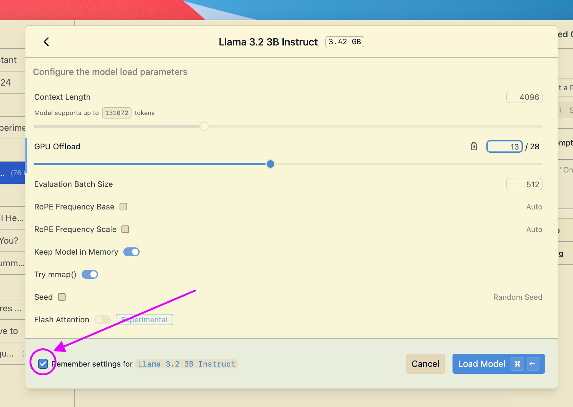 When the model is loaded anywhere in the app (including through lms load) these settings will be used.