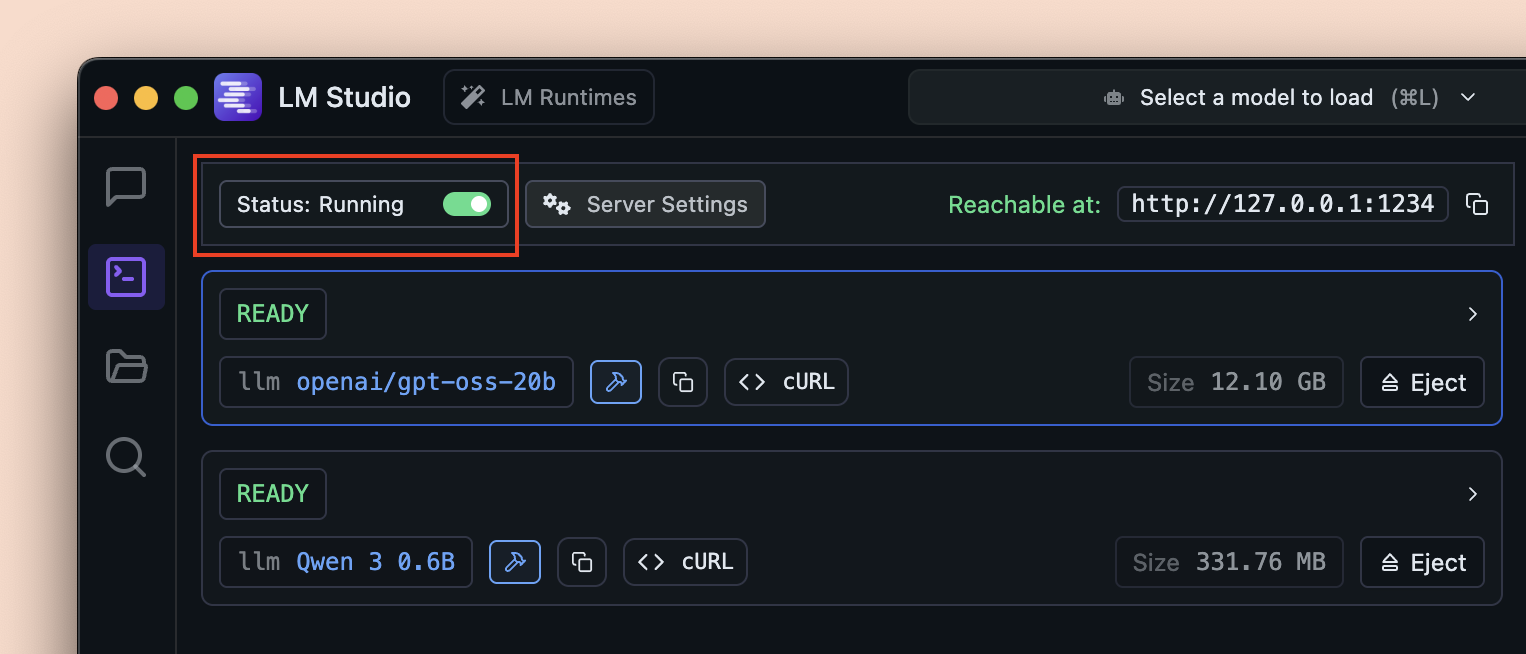 (LM Studio's CLI) to start the server from your terminal:
