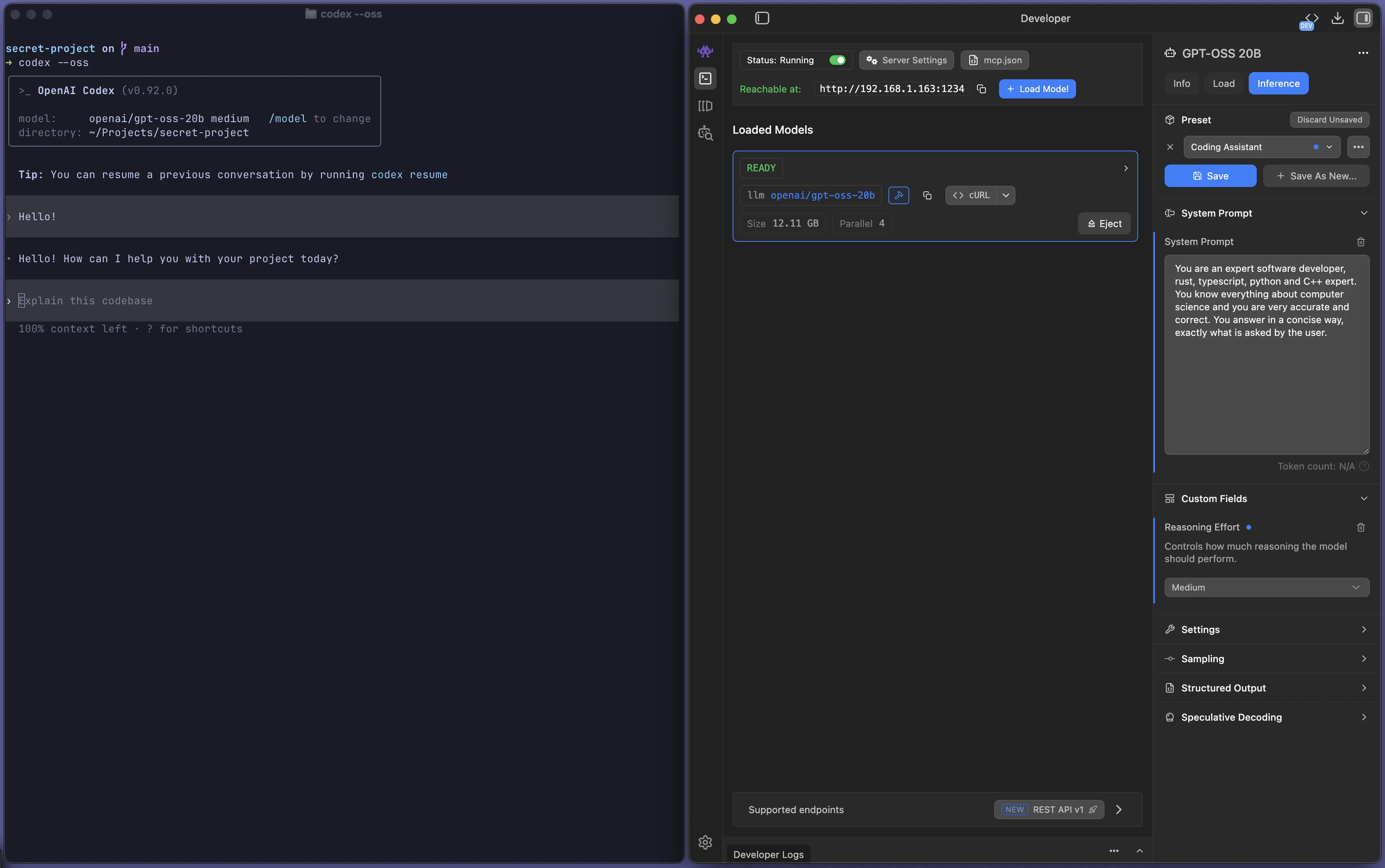 lms server start --port 1234Run Codex against a local model